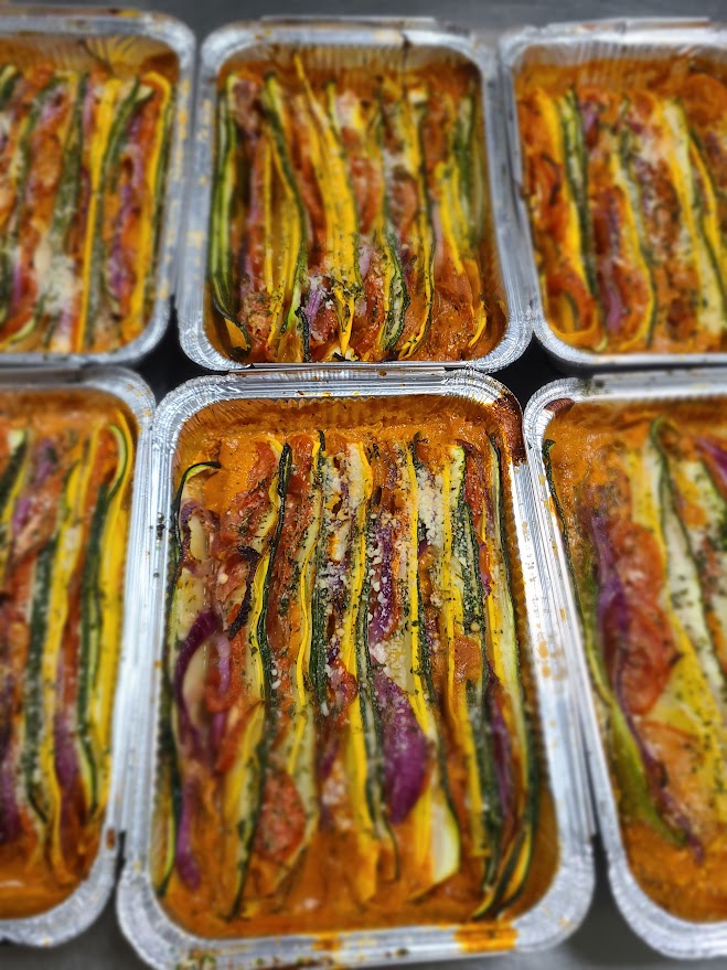 We love this dish! This weeks version will include a creamy tomato sauce base, zucchini, summer squash, and tomato. roasted and topped with olive oil, seasonings and a sprinkle of parmesan.