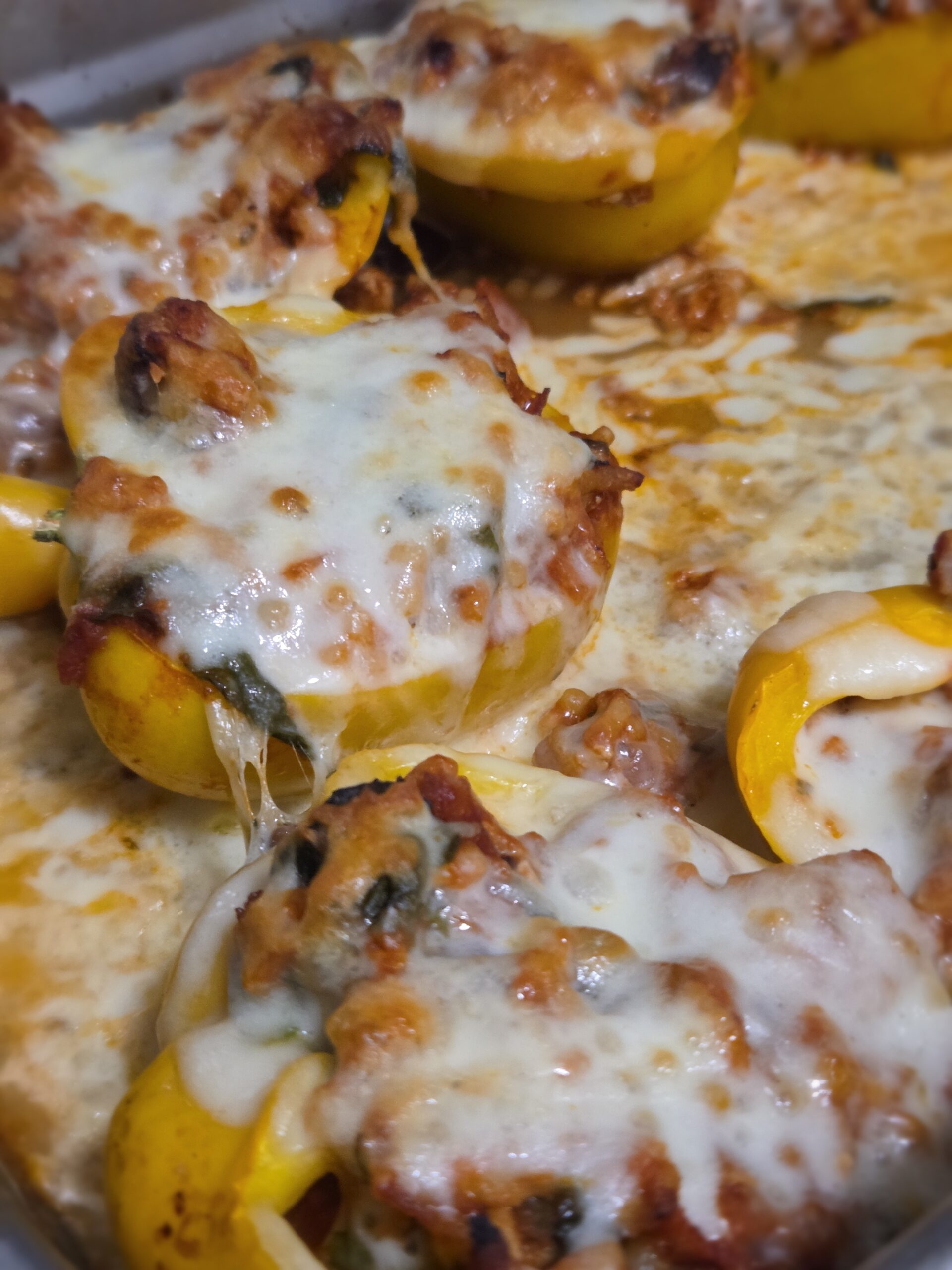 Seasoned ground turkey, spinach, pepperoni, acini de pepe, and black olives and light tomato sauce. Topped with mozzarella, provolone and cheddar cheese. You don’t want to miss these!